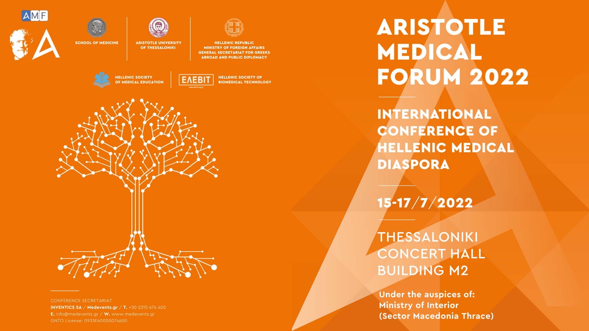 ΘΕΣΣΑΛΟΝΙΚΗ – Το 1ο Παγκόσμιο Πανομογενειακό Ιατρικό Συνέδριο διοργανώνουν -στο πλαίσιο του ετήσιου Aristotle Medical Forum (AMF)- το Τμήμα Ιατρικής του Αριστοτελείου Πανεπιστημίου Θεσσαλονίκης σε συνεργασία με τη Γενική Γραμματεία Απόδημου Ελληνισμού & Δημόσιας Διπλωματίας του Υπουργείου Εξωτερικών.