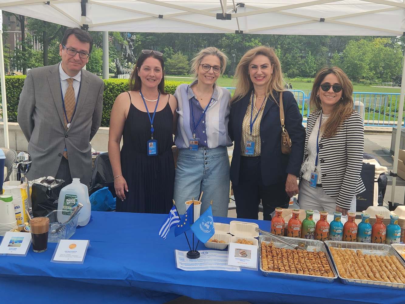 Όλα τα στελέχη της Μόνιμης Αντιπροσωπείας της Ελλάδας στον ΟΗΕ πρόσφεραν τις υπηρεσίες τους σε εθελοντική βάση, προσφέροντας ελληνικά προϊόντα στους ξένους επισκέπτες και διαφημίζοντας την εξαιρετική ποιότητά τους. Τα έσοδα δόθηκαν στον ΟΗΕ για φιλανθρωπικό σκοπό, για τη στήριξη ευάλωτων πληθυσμών και θυμάτων από πρόσφατες ανθρωπιστικές κρίσεις.