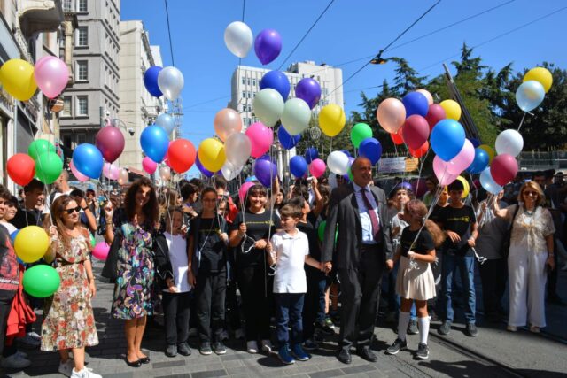 Εκατόν τριάντα μπαλόνια αφέθηκαν ελεύθερα στο Πέραν στην Κωνσταντινούπολη από τους μαθητές του Ζωγράφειου σχολείου της Πόλης, όσα και τα χρόνια λειτουργίας του, την Τρίτη 19 Σεπτεμβρίου 2023.