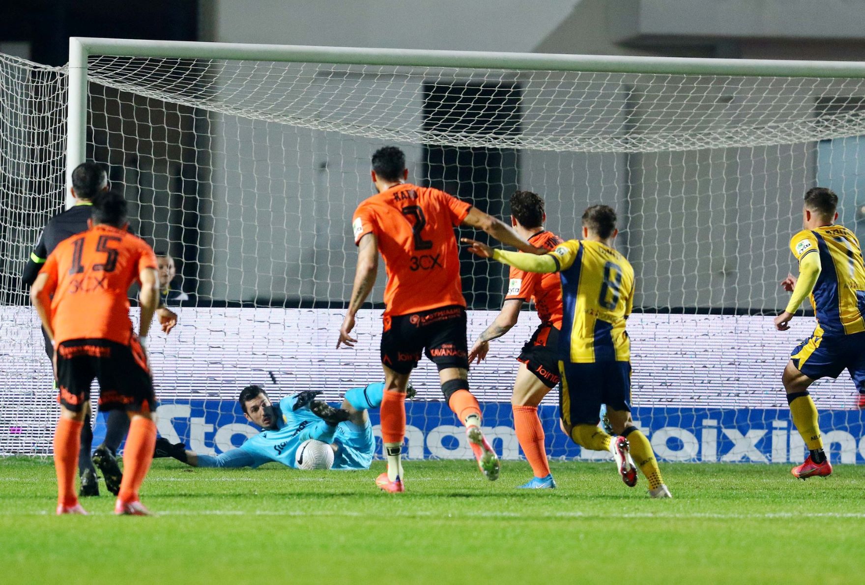 Δυνατά ξεκίνησε το πρώτο ημίχρονο της αναμέτρησης στην Πάφο με τις δύο ομάδες να θέλουν να σκοράρουν ένα γρήγορο γκολ. Στην πρώτη της καλή φάση στον αγώνα η φιλοξενούμενοι ευτύχησαν να σκοράρουν με κεφαλιά του Ντέλετιτς στο 11ο λεπτό μετά από ωραία σέντρα του Κορέια στην καρδιά της περιοχής της Πάφου.