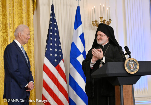 Ο Πρόεδρος Μπάιντεν εμφανίστηκε καταχειροκροτούμενος στην αίθουσα μαζί με τον Αρχιεπίσκοπο Αμερικής κ. Ελπιδοφόρο. Λίγο νωρίτερα, οι δύο πλευρές είχαν κατ’ ιδίαν συνάντηση, στην οποία ο Αρχιεπίσκοπος φέρεται να ζήτησε τη στήριξη των ΗΠΑ για τη διασφάλιση των θρησκευτικών ελευθεριών του Οικουμενικού Πατριαρχείου. Σύμφωνα με πληροφορίες, ο Αρχιεπίσκοπος χαρακτήρισε ελπιδοφόρα τη μεταστροφή του κλίματος που παρατηρείται στις ελληνοτουρκικές σχέσεις, εκφράζοντας την πεποίθηση ότι αυτή η αναθέρμανση πρέπει να αποτελέσει την αφετηρία για την απομάκρυνση των τουρκικών στρατευμάτων και τον τερματισμό της παράνομης κατοχής στην Κύπρο.