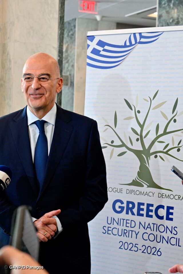 ΝΕΑ ΥΟΡΚΗ – Ο διάλογος, η διπλωματία και η δημοκρατία θα αποτελέσουν την πυξίδα της Ελλάδας για την υποψηφιότητά της και τη θητεία της στο Συμβούλιο Ασφαλείας του ΟΗΕ, επισήμανε ο υπουργός Εξωτερικών Νίκος Δένδιας σε ομιλία του στη Νέα Υόρκη στην εκδήλωση για την επίσημη παρουσίαση της υποψηφιότητας της Ελλάδας για μια μη μόνιμη θέση στο Συμβούλιο Ασφαλείας του ΟΗΕ για την περίοδο 2025-26.