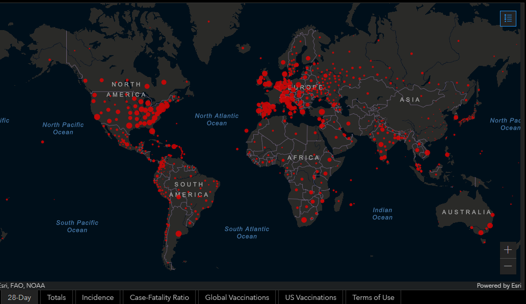 Ως τις 7:21 το βράδυ το πανεπιστήμιο έκανε λόγο για 60.072.321 επιβεβαιωμένα κρούσματα του ιού.
