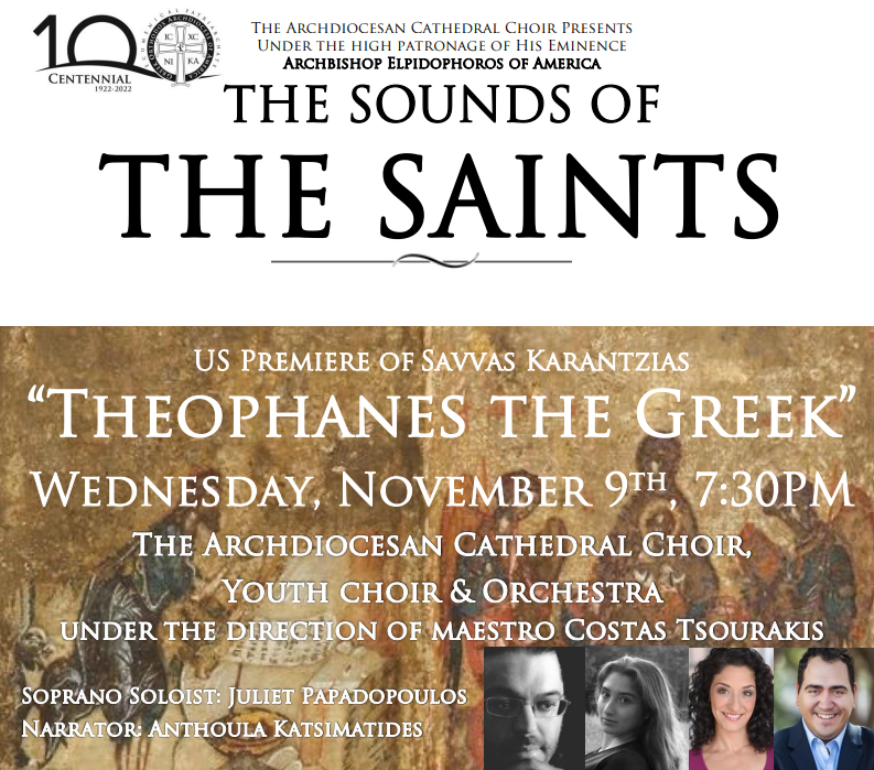Ακολουθώντας ένα γεωγραφικό ταξίδι μουσικής διπλωματίας, ο Έλληνας συνθέτης Σάββας Καραντζιάς ταξιδεύει με τη συναυλία «Οι Ήχοι των Αγίων» στη Νέα Υόρκη για να παρουσιάσει την αμερικανική πρεμιέρα του ορατορίου «Θεοφάνης ο Έλληνας».