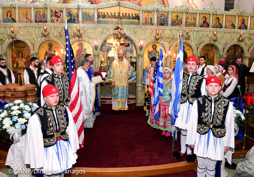 “Τα παιδιά μας ντύθηκαν Ελλάδα σήμερα για να μας τιμήσουν όλους”, τόνισε απευθυνόμενος στο εκκλησίασμα ο Επίσκοπος κ. Απόστολος και πρόσθεσε: “Παιδιά που γεννήθηκαν σ’ αυτόν τον τόπο, που ίσως δε γνωρίζουν την ιστορία των προγόνων μας, όπως τη βιώσαμε εμείς που γεννηθήκαμε εκεί, αλλά τη βιώνουν εδώ, μέσα απ’ αυτή τη Δοξολογία, μέσα από αυτή την όμορφη πανδαισία της αγάπης της Ομογένειας, μέσα από τις στολές τις οποίες έραψαν με τα χέρια τους οι γονείς και οι παππούδες τους για να τιμούν τους προγόνους τους και τους ανθρώπους που έφεραν τα ιερά και τα όσια της φυλής μας σ’ αυτόν τον ευλογημένο τόπο”.