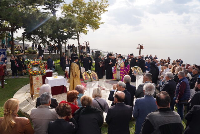 Στο τέλος της Θείας Λειτουργίας ο Παναγιώτατος τέλεσε Τρισάγιο για τους αναπαυομένους στην πόλη και την περιοχή, “τους τε ειρηνικώς κοιμηθέντας και τους μαρτυρικώς τελειωθέντας”.