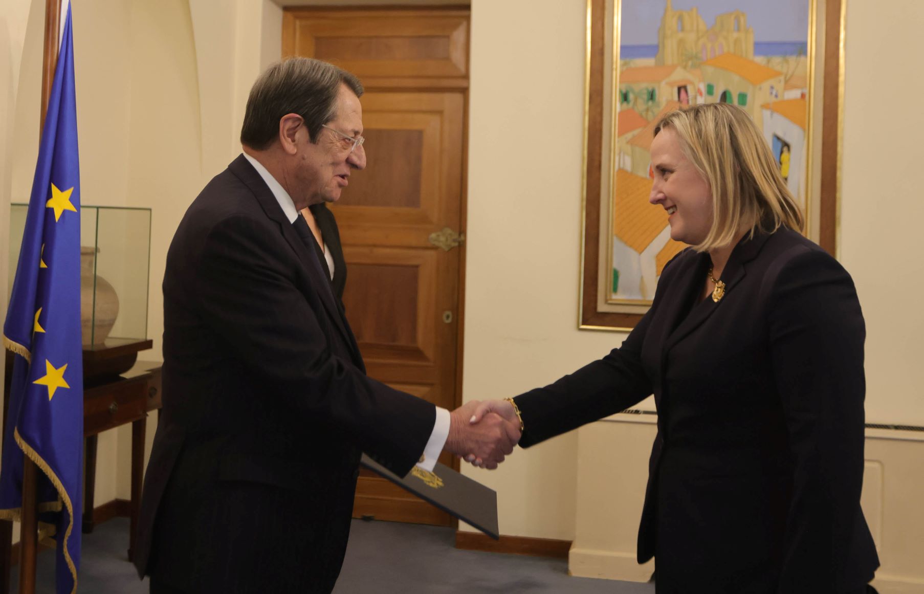 ΛΕΥΚΩΣΙΑ – Τα διαπιστευτήρια της νέας Πρέσβεως των ΗΠΑ στην Κύπρο, Τζούλι Φίσερ, δέχθηκε σήμερα στο Προεδρικό Μέγαρο ο Πρόεδρος της Κυπριακής Δημοκρατίας Νίκος Αναστασιάδης.