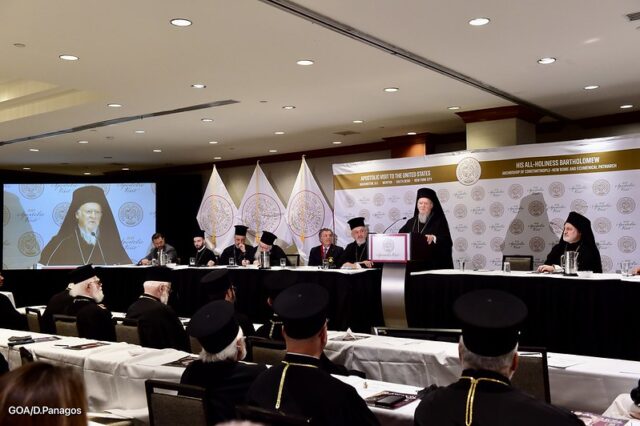 “Εύχομαι η Εκατονταετία της Αρχιεπισκοπής -το 2022- να είναι ένας πραγματικός σταθμός, ένας συναγερμός για ανασυγκρότηση, για ανανέωση, για μελλοντικά οράματα και σχεδιασμούς για το μέλλον των παιδιών σας και των εγγονών σας”, είπε ο Οικουμενικός Πατριάρχης κ. Βαρθολομαίος, μιλώντας το πρωί της Παρασκευής 29 Οκτωβρίου σε κοινή συνεδρίαση του Αρχιεπισκοπικού Συμβουλίου, του Εκτελεστικού Συμβουλίου της Εθνικής Φιλοπτώχου, και του Τάγματος των Αρχόντων του Αποστόλου Ανδρέα στο ξενοδοχείο Χίλτον στο Μανχάτταν.