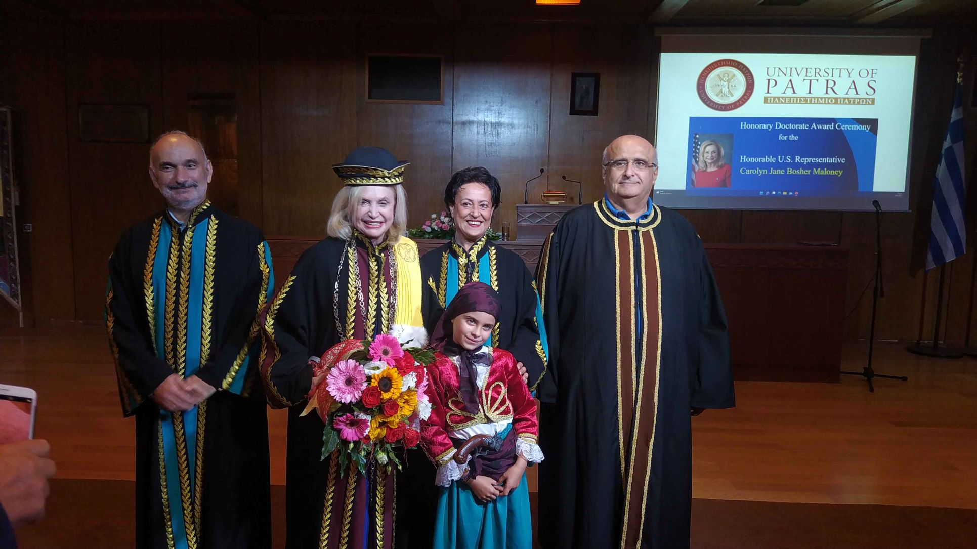 ΠΑΤΡΑ – Επίτιμη Διδάκτωρ του Τμήματος Επιστημών της Εκπαίδευσης και Κοινωνικής Εργασίας του Πανεπιστημίου Πατρών αναγορεύτηκε την Τρίτη 4 Οκτωβρίου η ομοσπονδιακή βουλευτής της Νέας Υόρκης, Carolyn Maloney.