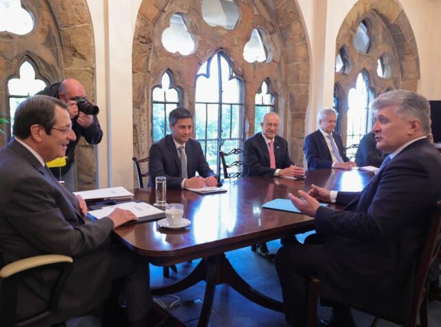 Σύμφωνα με γραπτή δήλωση του Κυβερνητικού Εκπροσώπου, κατά την εποικοδομητική και παραγωγική συζήτηση που είχαν, ο Πρόεδρος της Δημοκρατίας, επανέλαβε την ετοιμότητα της πλευράς μας για συνέχιση των προσπαθειών με στόχο την επανέναρξη της διαδικασίας για την επίλυση του Κυπριακού στη βάση μιας Διζωνικής Δικοινοτικής Ομοσπονδίας όπως προβλέπεται από τις παραμέτρους των Ηνωμένων Εθνών και τα ψηφίσματα του Συμβουλίου Ασφάλειας.