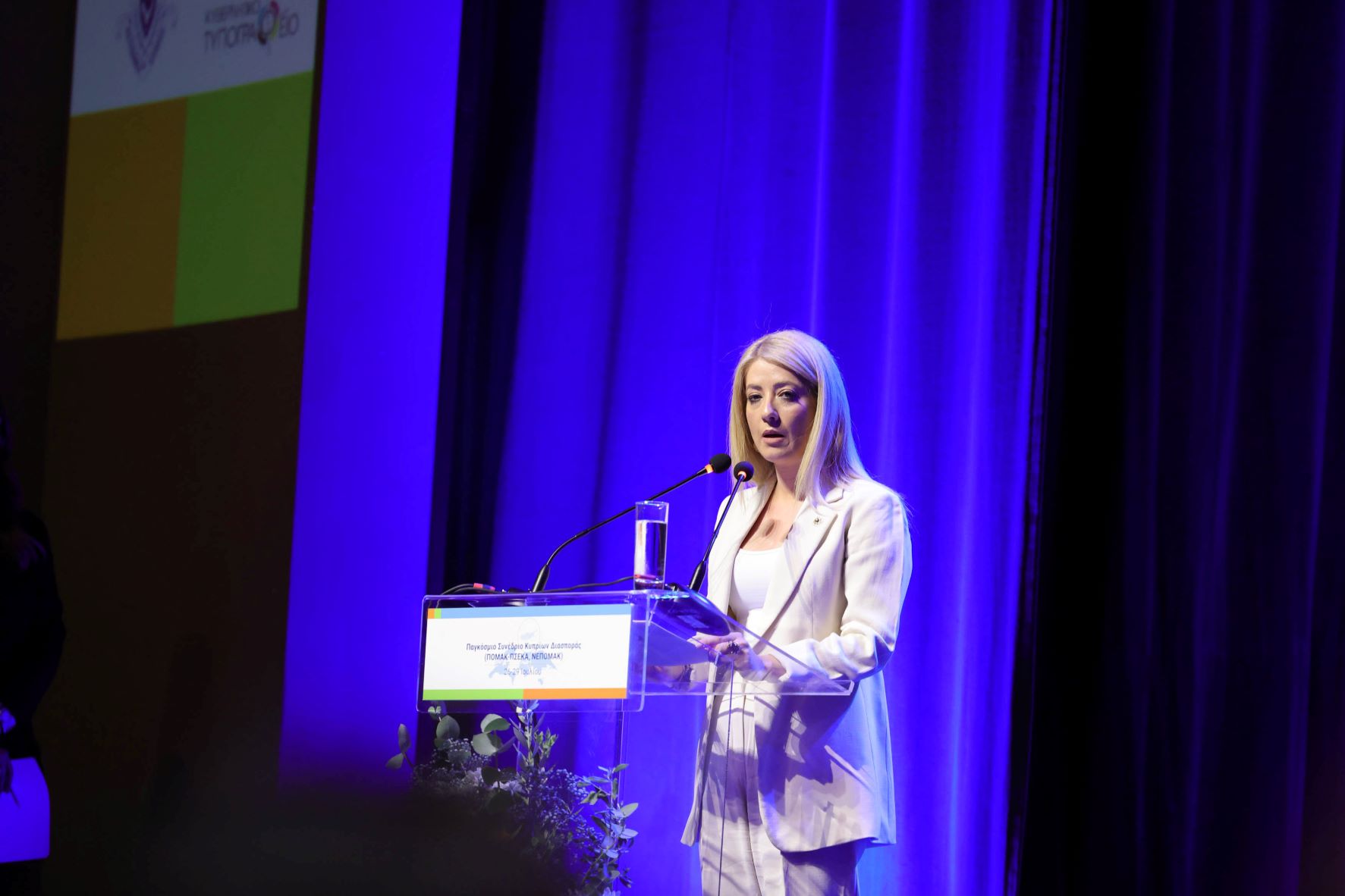 Αναφερόμενη στη Νεολαία Παγκόσμιας Ομοσπονδίας Απόδημων Κυπρίων (ΝεΠΟμΑΚ), η Πρόεδρος της Βουλής χαιρέτισε την ενεργό συμμετοχή της και τον σημαντικό ρόλο που διαδραματίζει στη συντήρηση της εθνικής ταυτότητας “του πιο ζωτικού και ελπιδοφόρου κομματιού της κοινωνίας μας”, όπως είπε.