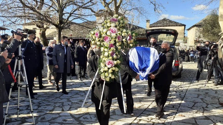 Το φέρετρο με τη σορό του, σκεπασμένο με τη Γαλανόλευκη, έφτασε οδικώς από την Αθήνα στα Ιωάννινα και μεταφέρθηκε με χειροκροτήματα, μέσα σε κλίμα συγκίνησης, με πλοιάριο στο Νησί.