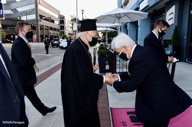 Στο αεροδρόμιο της πόλης τον Παναγιώτατο υποδέχθηκαν ο Μητροπολίτης Σικάγο κ. Ναθαναήλ, ο Επίσκοπος Εξαμιλίου, κ. Τιμόθεος, ο Γενικός Πρόξενος της Ελλάδας στο Σικάγο, Μάνος Κουμπαράκης, οι περιφερειακοί διοικητές του Τάγματος των Αρχόντων, Τζον Μάνος και Γκας Παμπλέκας.