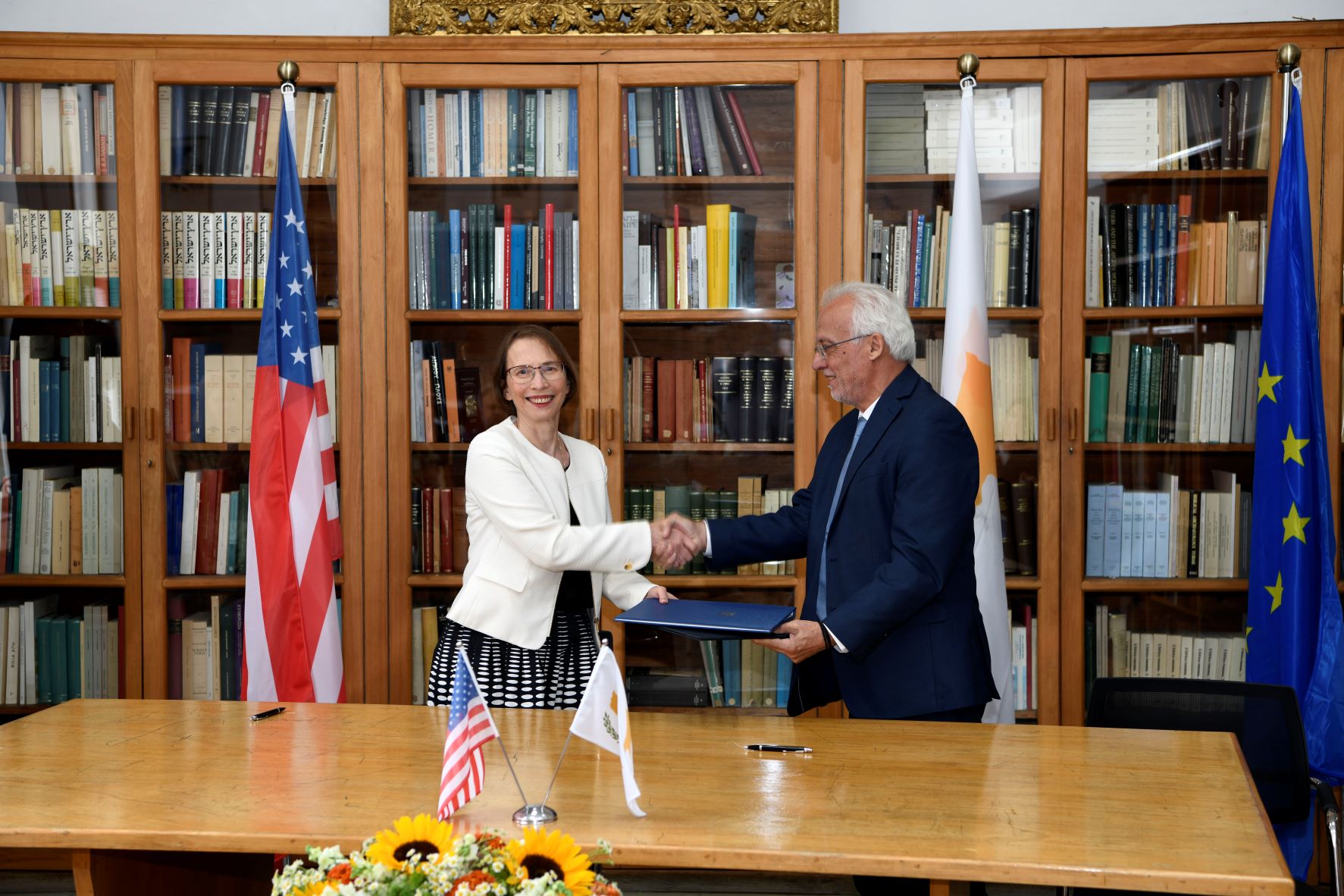 ΛΕΥΚΩΣΙΑ -Συμφωνία σχετικά με την Επιβολή Περιορισμών στις Εισαγωγές σε Κατηγορίες Αρχαιολογικού και Εθνολογικού Υλικού της Κυπριακής Δημοκρατίας υπέγραψαν σήμερα, εκ μέρους της Κυπριακής Δημοκρατίας, ο Γενικός Διευθυντής του Υπουργείου Μεταφορών, Επικοινωνιών και Έργων κ. Σταύρος Μιχαήλ και, εκ μέρους της Κυβέρνησης των Ηνωμένων Πολιτειών Αμερικής, η Πρέσβειρα των ΗΠΑ στην Κύπρο κα Judith Garber. Η τελετή υπογραφής πραγματοποιήθηκε συμβολικά στο Κυπριακό Μουσείο, έναν χώρο όπου φιλοξενούνται μερικές από τις πιο αντιπροσωπευτικές κυπριακές αρχαιότητες, χαρακτηριστικό παράδειγμα της πολιτιστικής ποικιλομορφίας της Κύπρου.