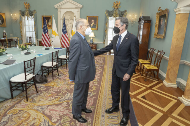 Τη δέσμευση των ΗΠΑ για την εμβάθυνση της συνεργασίας με την Κυπριακή Δημοκρατία εξέφρασε ο Άντονι Μπλίνκεν κατά τη διάρκεια της συνάντησης που είχε με τον Κύπριο υπουργό Εξωτερικών Ιωάννη Κασουλίδη στην Ουάσιγκτον.