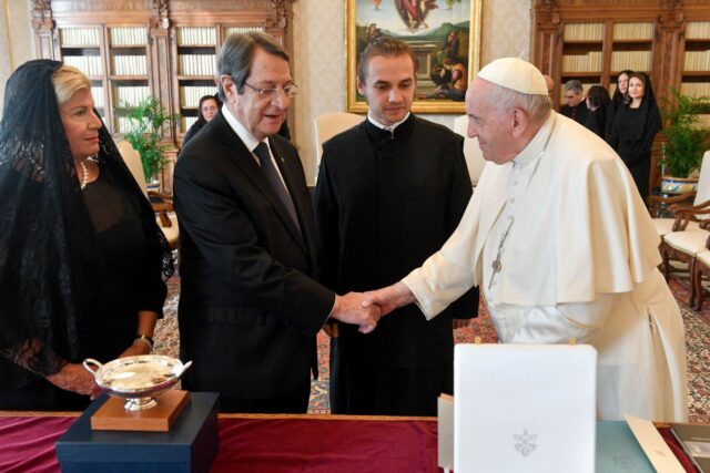 ΡΩΜΗ – Συνάντηση με τον Πάπα Φραγκίσκο είχε το πρωί ο Πρόεδρος της Κυπριακής Δημοκρατίας, Νίκος Αναστασιάδης, ο οποίος πραγματοποιεί επίσημη επίσκεψη στο Βατικανό και σήμερα έγινε επίσημα δεκτός στο Αποστολικό Μέγαρο της Αγίας Έδρας.