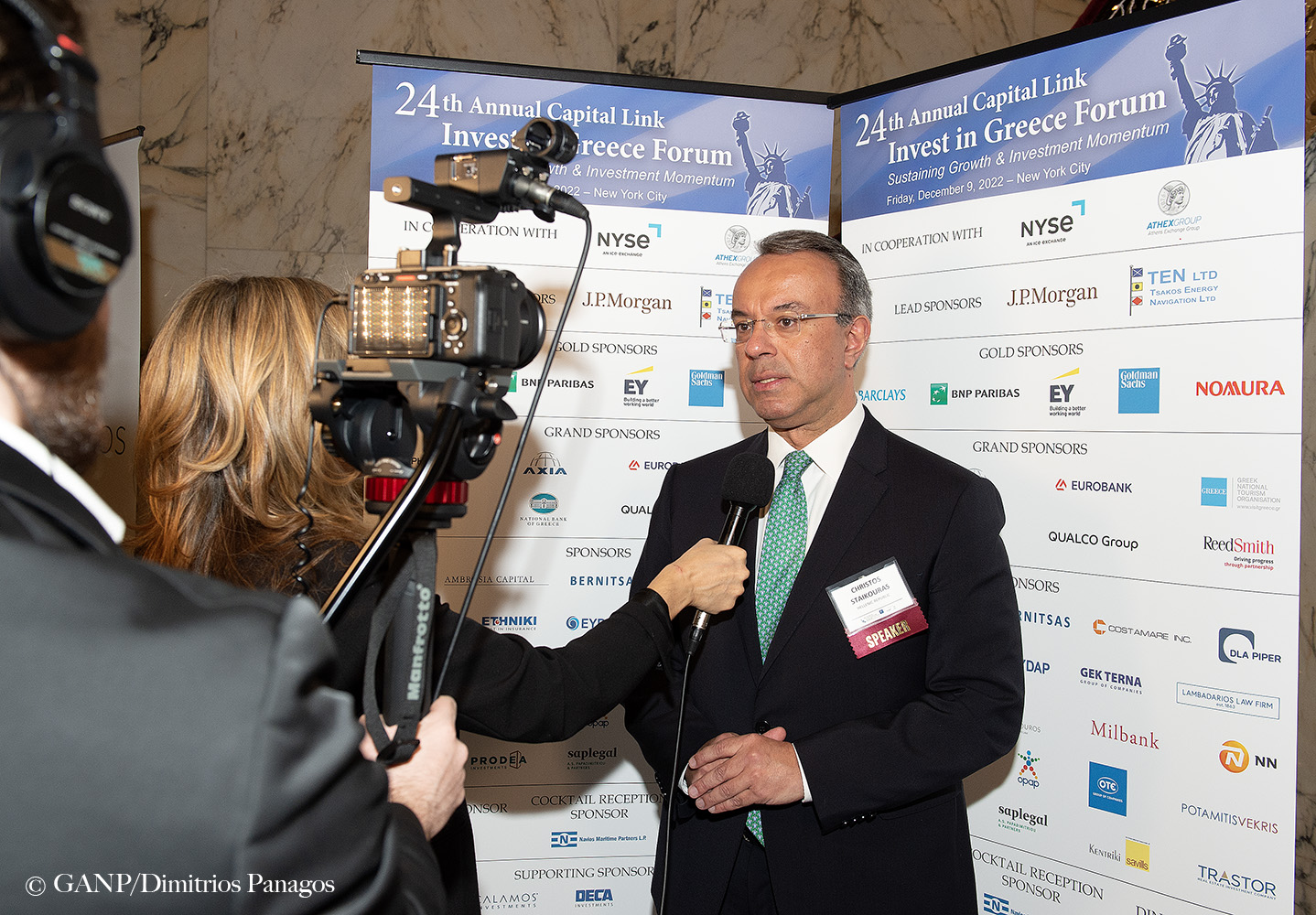 Για την αναπτυξιακή οικονομική πολιτική και τους στόχους της ελληνικής κυβέρνησης μίλησε ο υπουργός Οικονομικών, Χρήστος Σταϊκούρας, στο Ετήσιο Ελληνικό Επενδυτικό Συνέδριο της Capital Link που πραγματοποιήθηκε την Παρασκευή, 9 Δεκεμβρίου, σε συνεργασία με το Χρηματιστήριο της Νέας Υόρκης, μεγάλες διεθνείς τράπεζες και άλλους οργανισμούς.