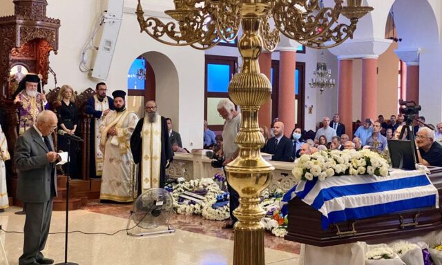 ΛΕΥΚΩΣΙΑ – Το ύστατο χαίρε στον Πρόεδρο του Συνδέσμου Αγωνιστών ΕΟΚΑ ’55-59, Θάσο Σοφοκλέους, είπε το πρωί του Σαββάτου 29 Ιουλίου στον Ιερό Ναό της Του Θεού Σοφίας στον Στρόβολο, η Κύπρος.