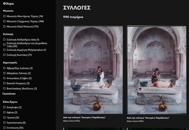 Ήδη περίπου 1.100 αντικείμενα έχουν ψηφιοποιηθεί και προβάλλονται με τυχαία σειρά ή επιλέγοντας ο χρήστης φίλτρα που αφορούν στο μουσείο όπου βρίσκονται, στη συλλογή στην οποία ανήκουν, στον δημιουργό τους, στο είδος του έργου ή στο έτος που δημιουργήθηκε.