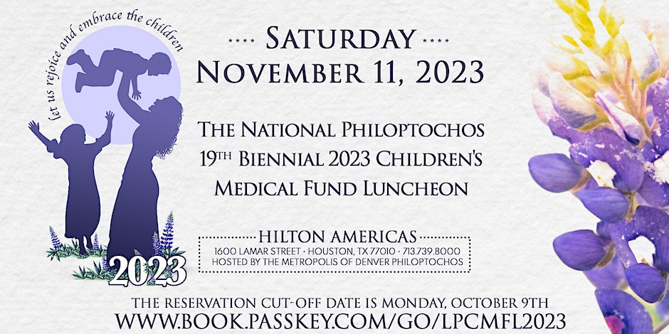The 19th Biennial Children’s Medical Fund Luncheon, hosted by the Metropolis of Denver Philoptochos, will take place -in the presence of H. E. Archbishop Elpidophoros- on Saturday, November 11, at the Hilton Americas in Houston, Texas.