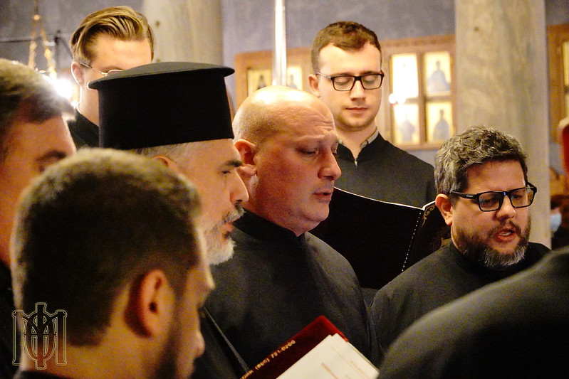 Στιγμιότυπο από τη συμμετοχή των ιεροψαλτών της Βυζαντινής Χορωδίας στην Δ’ Ψαλτική Εκδήλωση του Συνεδρίου στον Ι.Ν. Παναγίας Αχειροποιήτου