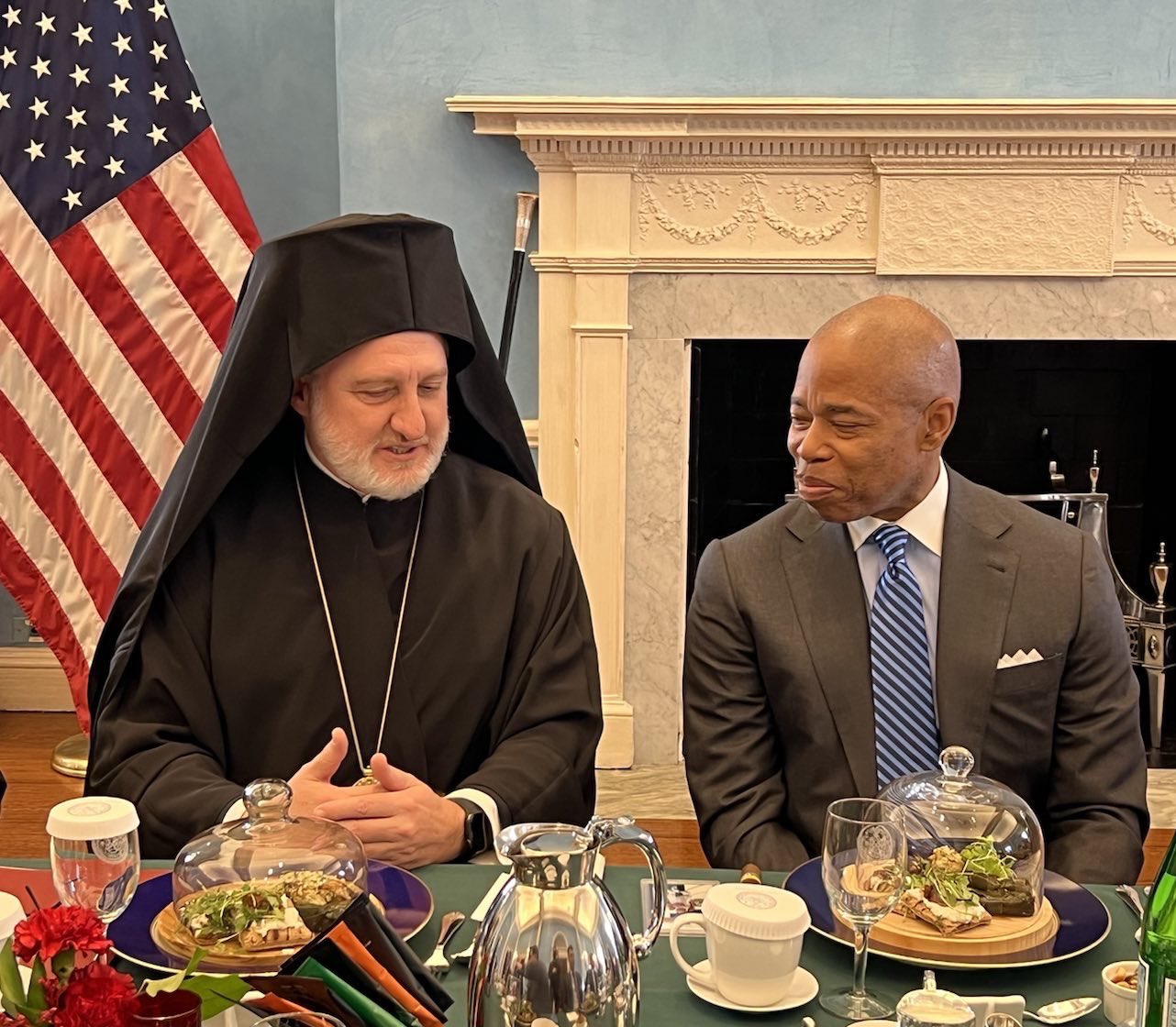 “Happy to meet again with mayor @ericadamsfornyc, together with Greek American leaders. We discussed the vital concerns of our Patriarchate, Turkey’s illegal invasion & occupation of Cyprus and demands on Greece”, His Eminence said in a tweet.