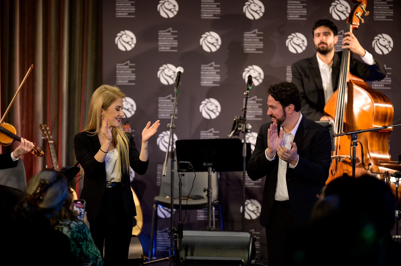 The Stavros Niarchos Foundation Library hosted the event as part of the “7 Stories Up” series funded by the Foundation. The ambiance of the room was elevated with the inclusion of dress forms in both male and female traditional Cypriot dance costumes, and a stage full of traditional instruments, giving the essence of both concert and museum presentation. The event was highly attended, with the organizers needing to set extra chairs out for the eager audience.
