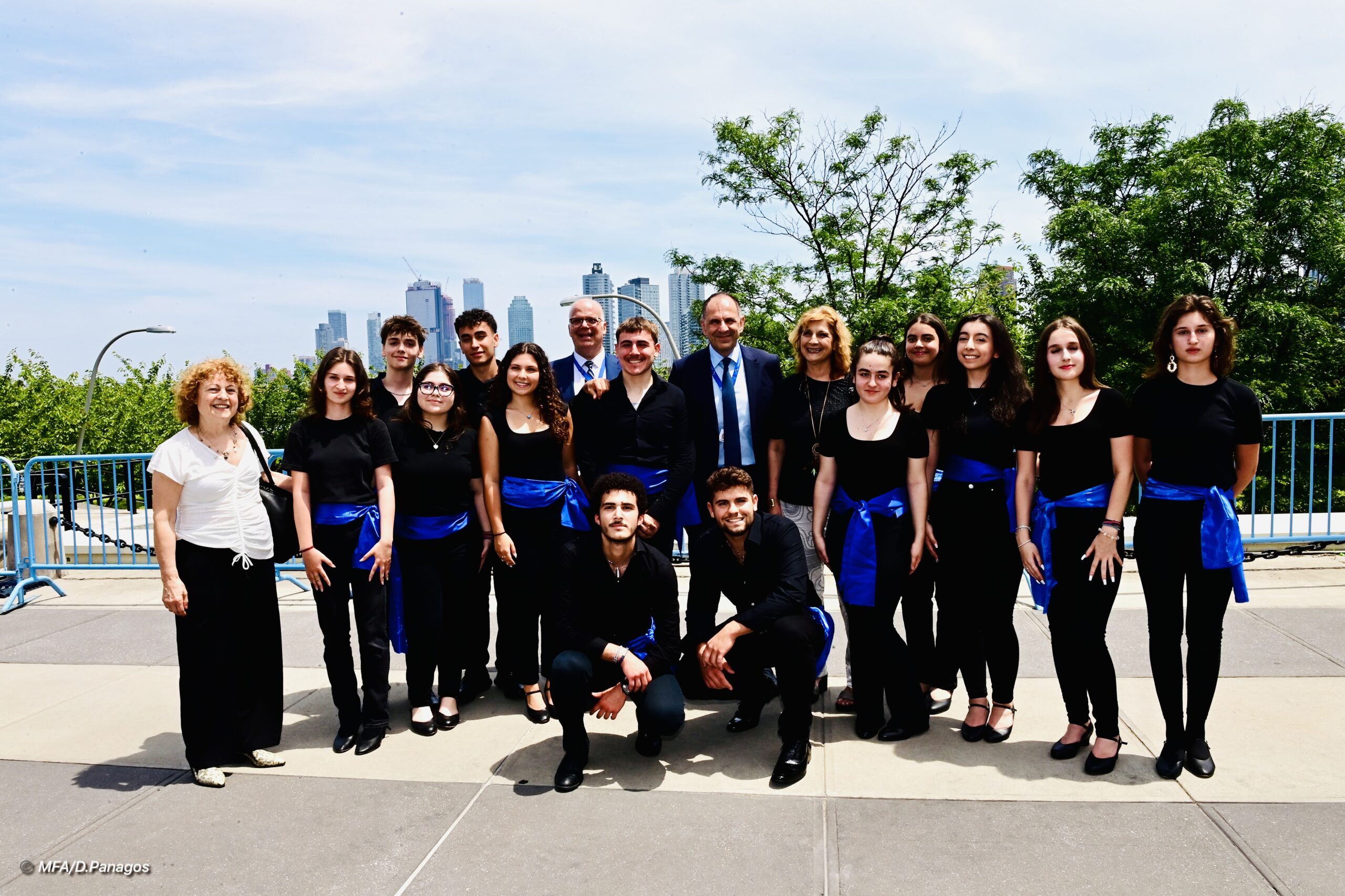Οι μαθητές του Αγίου Δημητρίου που επισκέφθηκαν την έδρα των Ηνωμένων Εθνών με τη συνοδεία της υποδιευθύντριας Ελένης Καραγιώργου και της φιλολόγου Ρίτας Συντήλα, χόρεψαν κάτω από έναν καταγάλανο ουρανό, κέρδισαν τα θερμότερα και πιο ενθουσιώδη χειροκροτήματα και των άλλων αποστολών και δέχθηκαν μαζί με τα συγχαρητήρια του Υπουργού κ. Γεραπετρίτη και αναμνηστικά δώρα από τα στελέχη της Μόνιμης Αντιπροσωπείας.