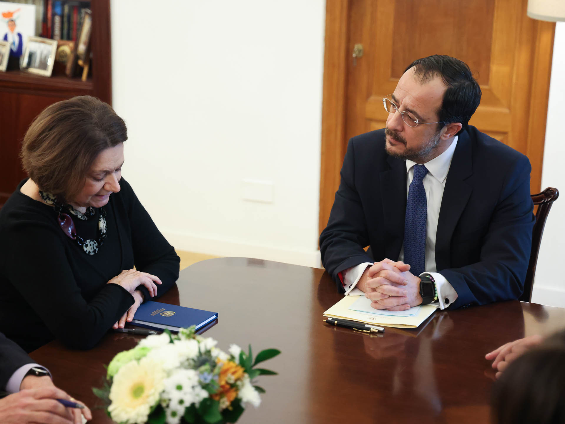 “Η Αναπληρώτρια Γενική Γραμματέας για Πολιτικά Θέματα και Θέματα Οικοδόμησης της Ειρήνης, Ροζ Μαρι Ντι Κάρλο επισκέπτεται την Κύπρο. Σήμερα, η κ. Ντι Κάρλο συναντήθηκε ξεχωριστά με τον Ελληνοκύπριο και τον Τουρκοκύπριο ηγέτη, κ. Νίκο Χριστοδουλίδη και κ. Eρσίν Τατάρ, αντίστοιχα, για να συζητήσουν τη μελλοντική πορεία στο Κυπριακό ζήτημα και την προετοιμασία μιας άτυπης συνάντησης σε ευρύτερη μορφή” ανέφερε ο κ. Χακ.