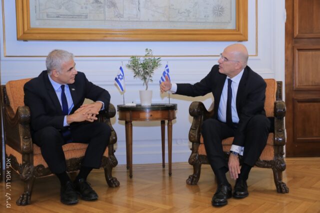 ATHENS – A meeting between Foreign Minister Nikos Dendias and his Israeli counterpart Yair Lapid was held on Tuesday in Athens, described by the Greek Ministry of Foreign Affairs as a “constructive discussion on the strategic relationship and on enhancing bilateral cooperation in all areas.”