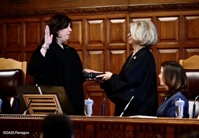 Speaking of Judge Singas, NY Gov. Hochul noted in her remarks: “She’s also, and this is what I wanted to mention, the daughter of Greek immigrants. And she often had to serve as a translator for her parents. She had to become their voice, and that’s incredible. And she said that she was motivated by having to be a voice for her parents and their family to be a voice for others in public service. I think that’s beautiful. And now she’ll have a voice for all New Yorkers here on the highest court. So I want to congratulate you on your position as well”.