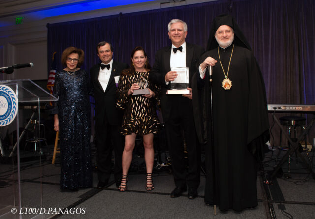 Argyris Vassiliou was presented with Chairman’s Award and Ann Vassiliou with the Shining Star Award by Archbishop Elpidophoros, L100 Executive Director Paulette Poulos and newly elected Chairman Demetrios Logothetis at the banquet. Photos: © GOA/DIMITRIOS PANAGOS