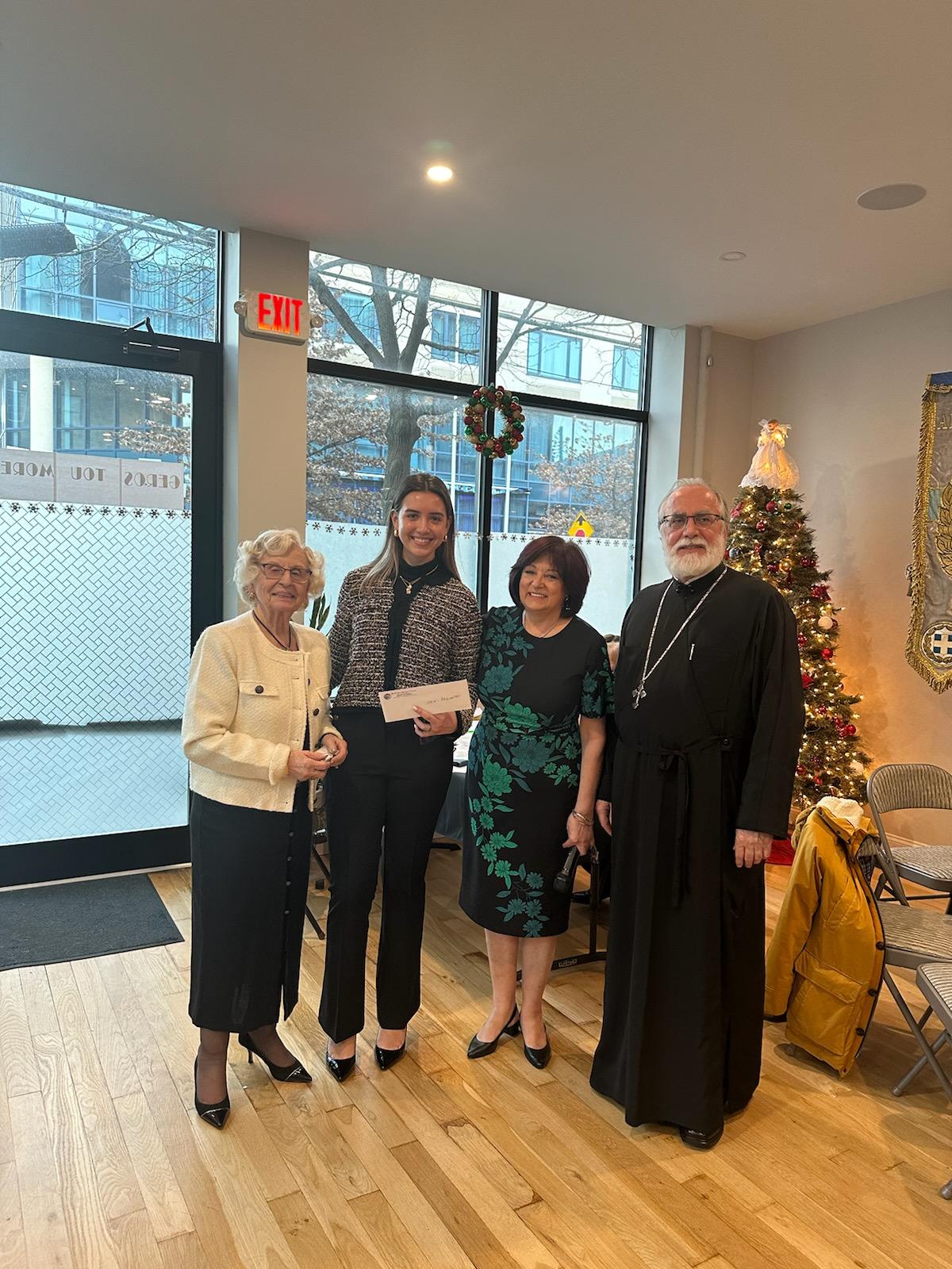 Στη φωτογραφία, εκτός από τον π. Ανάργυρο και την πρώτη γυναίκα πρόεδρο του «Γέρου του Μωριά», διακρίνεται η 18χρονη Ειρήνη Νταγιάντη, η οποία μίλησε στα Ελληνικά και εντυπωσίασε με το συγκινητικό μήνυμά της που δίνει ελπίδες για τη συνέχιση των παραδόσεών μας από τη νέα γενιά, μαζί με τη γιαγιά της, Αθανασία Νταγιάντη.