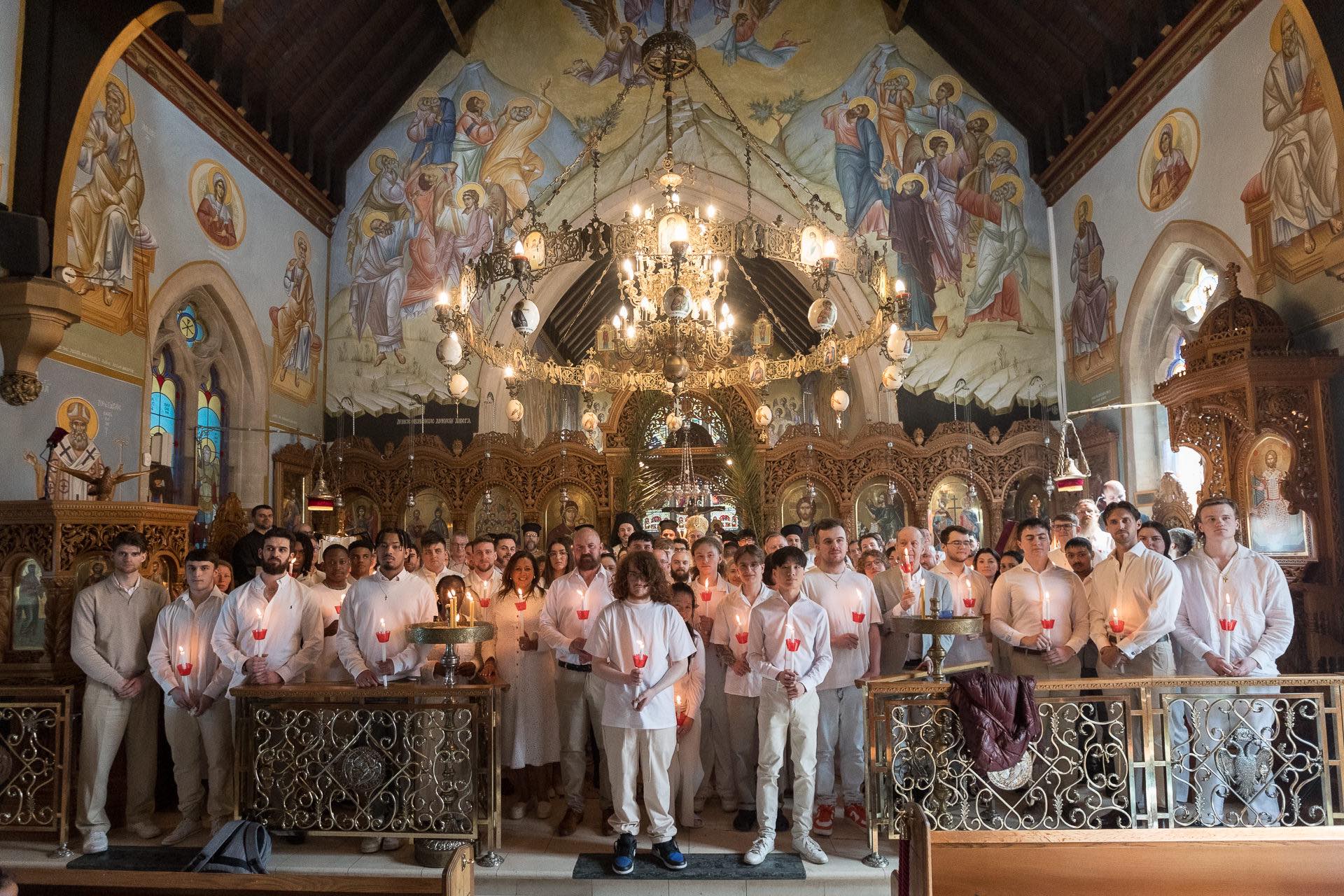 The newly illumined Orthodox Christians, primarily adults with several children among them, were received by Holy Baptism and Holy Chrismation. Nearly twenty adults entered the Church through Chrismation alone. Participants represent a broad range of backgrounds—hailing from the United Kingdom, Cyprus, Greece, Albania, Bulgaria, Africa, Latin America, Asia, and across the Commonwealth and Europe.