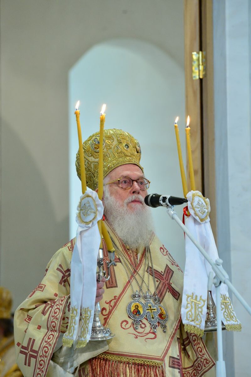 “Αποχαιρετούμε σήμερα τον μακαριστό Αρχιεπίσκοπο Αλβανίας, Αναστάσιο, που με τον μειλίχιο λόγο του και το μεγάλο του έργο άνοιγε δρόμους αλληλεγγύης και αγάπης παραμερίζοντας διακρίσεις και μισαλλοδοξίες.