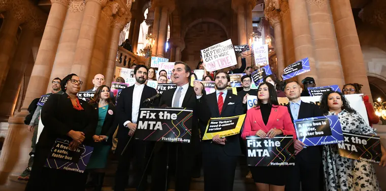 ALBANY, N.Y. – Senate Deputy Leader Michael Gianaris joined legislators and advocates for a rally and press conference supporting the #FixTheMTA legislative package on February 14 at the State Capitol. Senator Gianaris is leading the effort to ensure this proposal is included and funded in this year’s state budget.