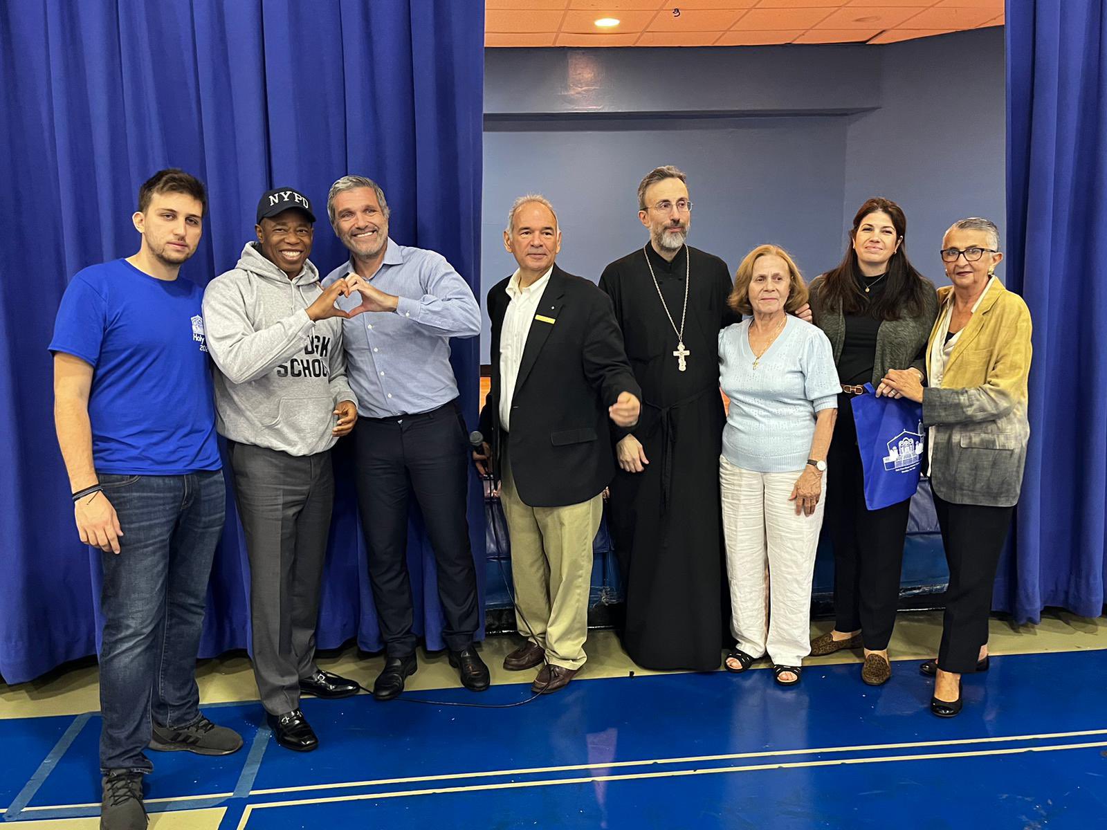 NYC Mayor Eric Adams and Consul General of Greece, Dinos Konstantinou at the Holy Cross Brooklyn Annual Festival