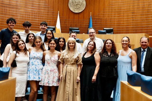 Την ομάδα ομογενών μαθητών και μαθητριών από τις ΗΠΑ και τον Καναδά που επισκέπτονται τις ημέρες αυτές την Κύπρο, στο πλαίσιο θεσμοθετημένης δράσης της Υπηρεσίας Κυπρίων Αποδήμων και Επαναπατρισθέντων του Υπουργείου Εξωτερικών, υποδέχθηκε την Τρίτη 8 Ιουλίου, στη Βουλή των Αντιπροσώπων η Πρόεδρος Αννίτα Δημητρίου.