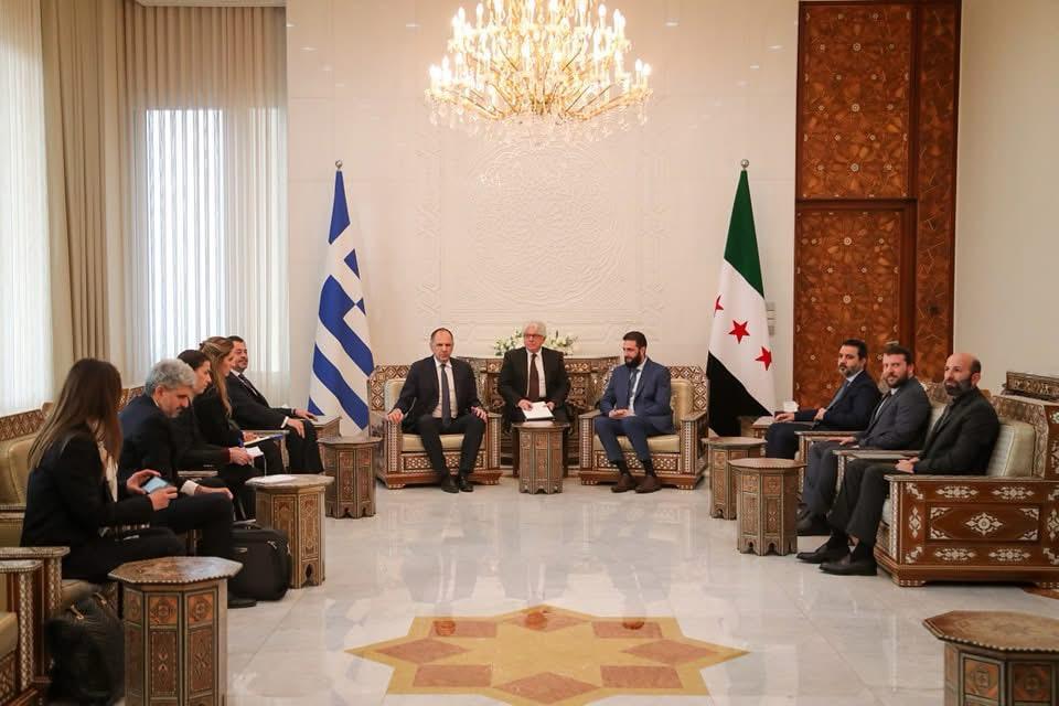 Με τον μεταβατικό Πρόεδρο, Ahmad Αl Sharaa και τον υπουργό Εξωτερικών της Συρίας Asaad Αl Shaibani, συναντήθηκε σήμερα, Κυριακή 9 Φεβρουαρίου, στη Δαμασκό ο Υπουργός Εξωτερικών της Ελλάδας, Γιώργος Γεραπετρίτης.