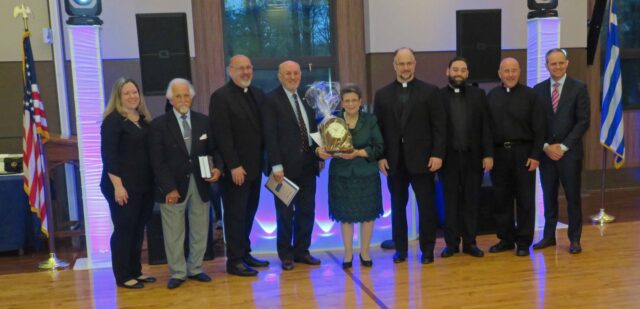 “It is with great humility, love, and respect that I stand in front of you today in this beautiful Marros Hall of the Church of Saviour in Rye!” said Mrs. Tsokou Kromidas. “Tonight, I feel blessed to be surrounded by people who are very dear to me! The very reverend Father Elias Villis Pastor of this Parish and Chancellor of the Direct District of the Holy Archdiocese of America, spiritual leaders, colleagues, community leaders, parents, friends, and children! Words cannot adequately capture the extent of my gratitude to this great Parish and its Hellenic School for honoring me tonight!